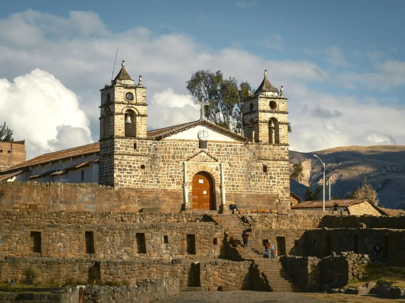 Entre sus construcciones destaca el templo del Sol y la Luna, con tres terrazas escalonadas de piedra pulida y labrada. Durante la Colonia se levantó sobre sus bases la iglesia de San Juan Bautista con piedras extraídas de muros incas. También está el “ushno”, pirámide trunca con cinco plataformas coronada con el sillón del inca, una piedra tallada con dos asientos desde donde el inca y la colla presenciaban las ceremonias.