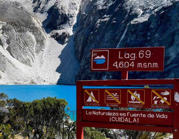 Para iniciar este Trekking Laguna 69 salimos de Huaraz hacia el norte del Callejón de Huaylas hasta la ciudad de Yungay. Luego de una pausa continuamos hacia Cebollapampa a 3,900 msnm, desde donde inicia el trekking. La caminata dura aproximadamente 3 horas con vistas privilegiadas a las montañas más altas de la cordillera como la Chacraraju, Pisco, Yanapaccha y Huascarán Sur.