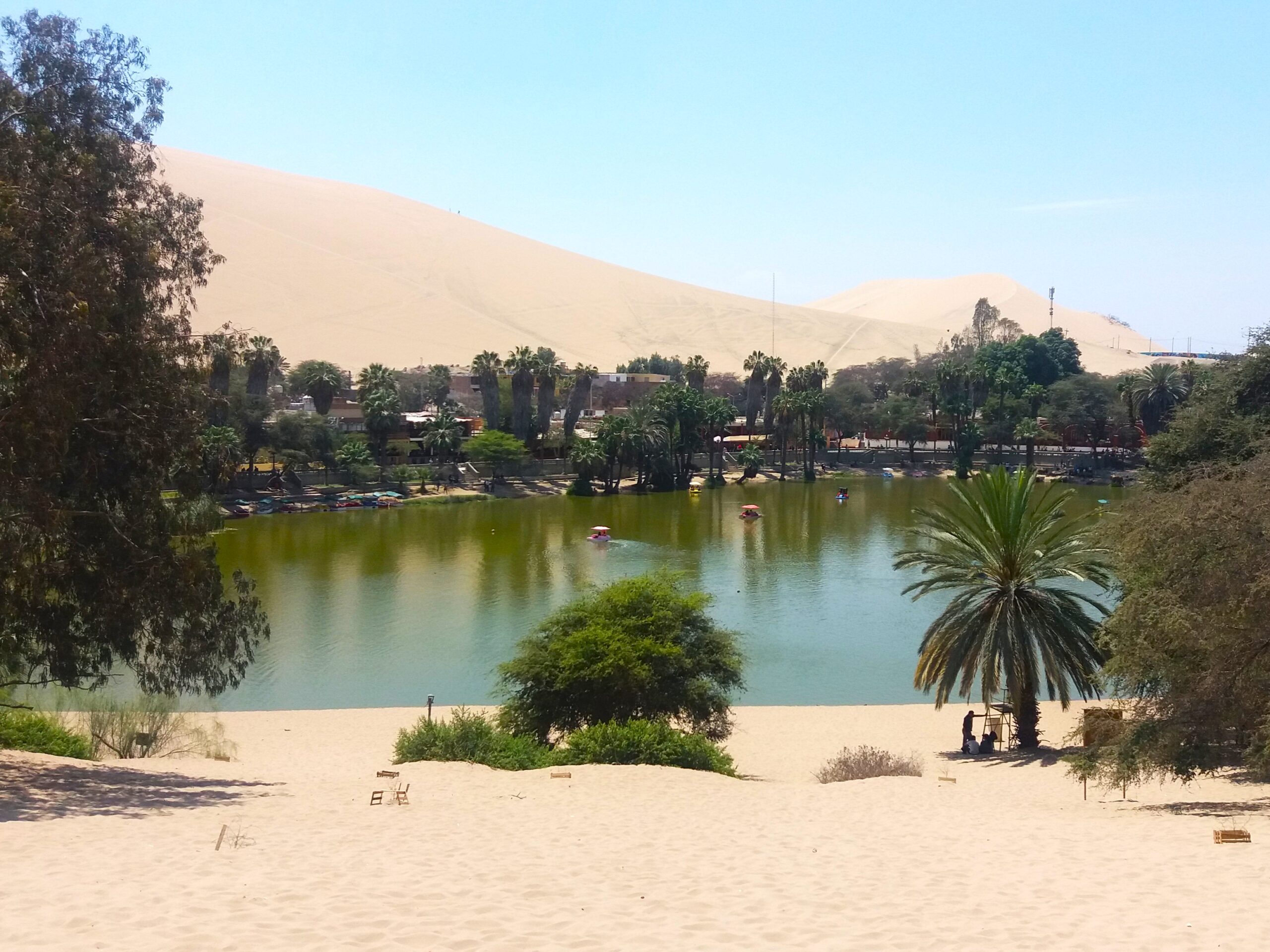 El oasis se encuentra ubicado a 20 minutos de la ciudad de Ica, tiene un área promedio de 100 metros de largo por 80 de ancho y una profundidad en su parte central de 10 metros, siendo el color de sus aguas de un tono verde esmeralda, ideal para navegar en embarcaciones a pedal. El horario ideal para visitarlo es por la tarde para realizar el tour junto con los tubulares y sandboarding.